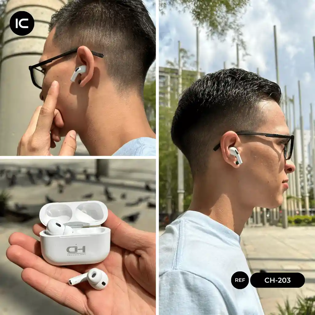 AUDIFONOS BLUETOOTH CH CH-203 Versión bluetooth 5.3 Rango de conexión: 10 m Tiempo de trabajo:3.5 H(80% volumen) Tiempo de carga: 2h Modo de control: touch
