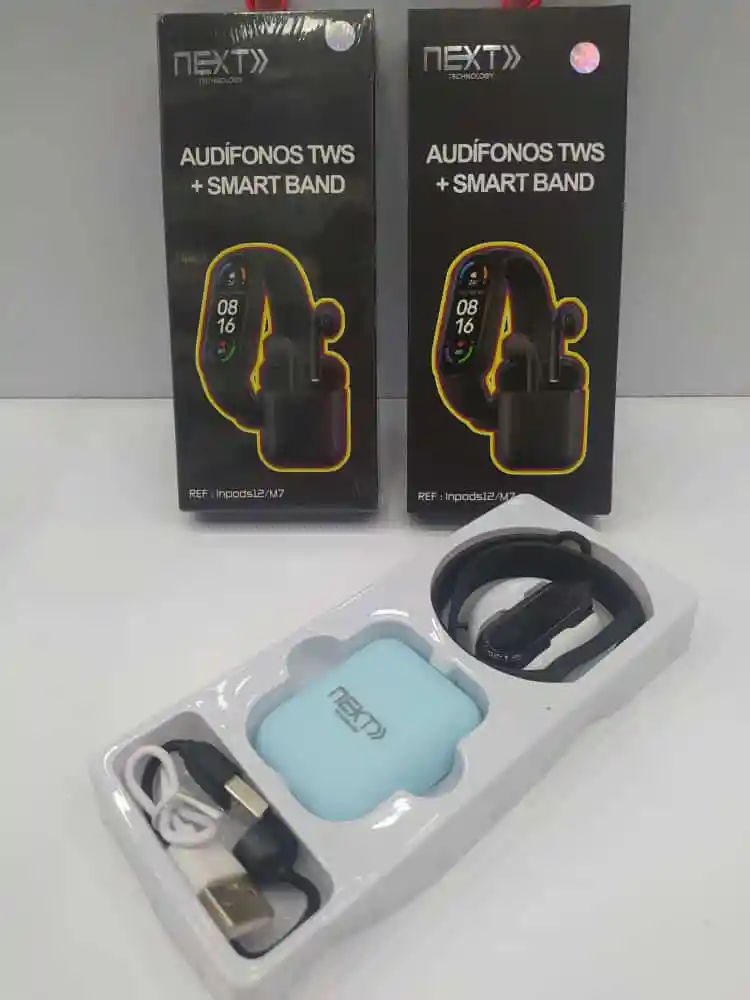 Audífonos Bluetooth I12 + banda deportiva Los i12 te brindan la comodidad de llevar tu música contigo a donde vayas, ya sea mientras te ejercitas, viajas o relajas. Su diseño compacto y ligero se adapta perfectamente a tus oídos, y su estuche de carga portátil garantiza que nunca te quedes sin batería. Controla la reproducción, responde llamadas y activa el asistente de voz con solo tocar un botón. La banda deportiva reloj notificaciones de llamadas, mensajes, modo deportivo,. la
