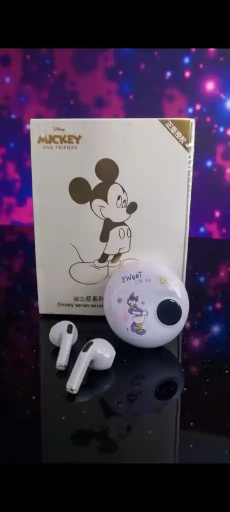 Audífonos Bluetooth Inalámbricos Disney Mickey & Friends Estuche Daisy Disfruta de tu música favorita con estilo y diversión con los audífonos inalámbricos Disney Series Bluetooth. Inspirados en Mickey & Friends, vienen con un estuche compacto y decorado con Daisy, ideal para llevar a todas partes. Conexión Bluetooth estable y de fácil emparejamiento. Estuche de carga portátil con diseño exclusivo Disney. Audio claro y nítido para llamadas y música. Diseño ergonómico tipo in-ear para mayor comodidad. Ideal como regalo para fans de Disney. Perfectos para quienes buscan calidad, comodidad y un toque mágico de Disney en su día a día. •Color del Estuche: Lila