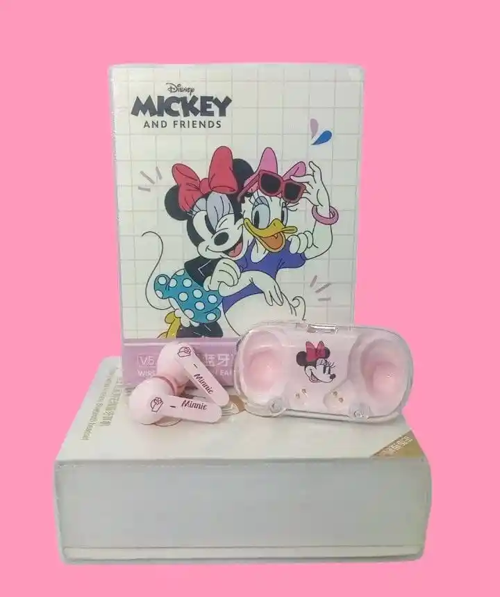 Audífonos Bluetooth Minnie Mouse Disney Inalámbricos con Estuche de Carga Disfruta de tu música favorita con el encanto único de Minnie Mouse. Estos audífonos inalámbricos Bluetooth edición Disney Mickey and Friends ofrecen sonido estéreo de alta calidad, diseño cómodo y moderno en color rosa pastel. Incluyen un práctico estuche de carga transparente decorado con Minnie, ideal para llevar a todas partes. Compatibles con la mayoría de dispositivos móviles y perfectos para regalar a fanáticos de Disney. Características principales: •Conexión Bluetooth V5.0 •Diseño ergonómico y ligero •Estuche con ilustración de Minnie Mouse •Sonido estéreo de alta fidelidad •Color: Rosa pastel •Ideal para uso diario, viajes o regalos
