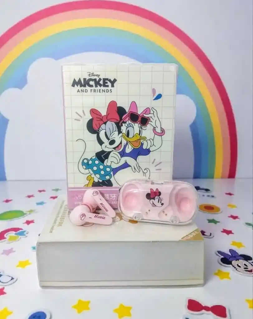 Audífonos Bluetooth Minnie Mouse Disney Inalámbricos con Estuche de Carga Disfruta de tu música favorita con el encanto único de Minnie Mouse. Estos audífonos inalámbricos Bluetooth edición Disney Mickey and Friends ofrecen sonido estéreo de alta calidad, diseño cómodo y moderno en color rosa pastel. Incluyen un práctico estuche de carga transparente decorado con Minnie, ideal para llevar a todas partes. Compatibles con la mayoría de dispositivos móviles y perfectos para regalar a fanáticos de Disney. Características principales: •Conexión Bluetooth V5.0 •Diseño ergonómico y ligero •Estuche con ilustración de Minnie Mouse •Sonido estéreo de alta fidelidad •Color: Rosa pastel •Ideal para uso diario, viajes o regalos