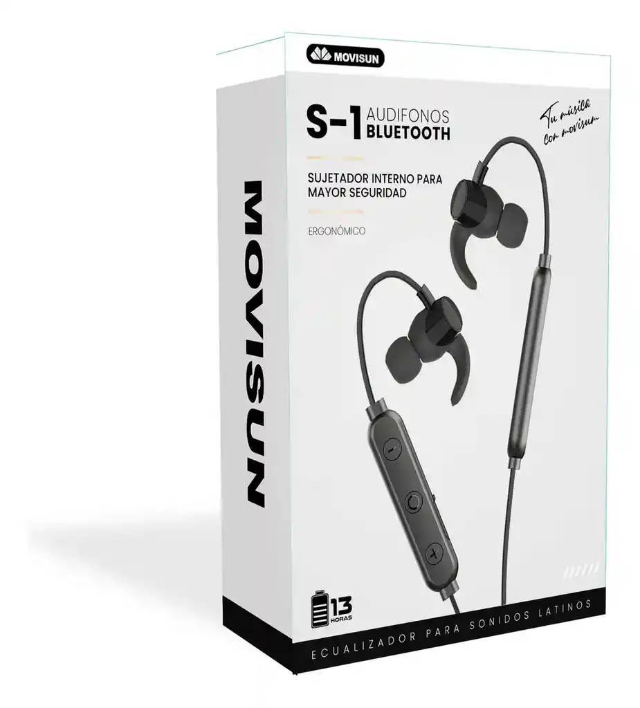 Espectaculares Audífonos Bluetooth Movisun S-1 Función clave: encendido/apagado, reproducir/pausar, volumen+/ siguiente canción/canción anterior, responder/colgar. Versión de Bluetooth: 5.0 Capacidad Batería: 110mAh Tiempo de trabajo:13 H Tiempo de carga: 2 H Rango:10 metros Micrófono incorporado Audífono de goma Cable plano siliconado