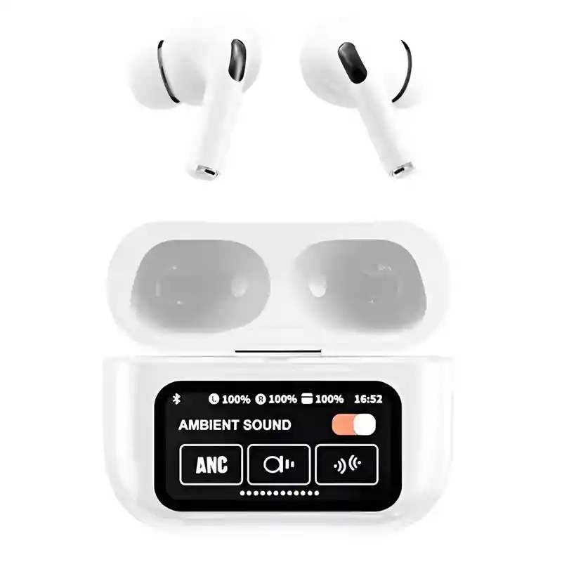 Control táctil (pausar/reproducir/cambiar música) Control del volumen (deslizar para subir/bajar volumen) Control de voz con SIRI y similares. Tamaño AirPods originales. Detección automática del celular. Sonido profesional. Encendido y apagado automático. Amplificador exclusivo con alto rango dinámico Cancelación de ruido. Bluetooth 5.3 Duración de batería: 6 horas de música continua dependiendo volumen y uso de sensores. Al ingresar los audífonos al estuche, estos cargan automáticamente. Sensor de proximidad: Pausa el audio al retirar los audífonos, al colocarlo reinicia el audio. Controlador de alta excursión Audio espacial. 6 almohadillas de recambio, con diferentes tallas para adecuarse a cualquier oído. Dos micrófonos (al ser replicas, se recomienda hablar en lugares cerrados). Estuche con bocinas en caso de perdida, desde el celular se puede reproducir un sonido para encontrarlos. Cable de carga USB-C incluido. Cuenta con utlima actualizacion para IOS 18. Funciones pantalla tactil: Control de musica Control de volumen Control de cancelacion de ruido y sonido ambiente Ecualizador Fotografias de forma remota Linterna Alarma Encontrar audifonos Cambio de idioma Control de brillo de pantalla Fondo de pantalla Hora y fecha