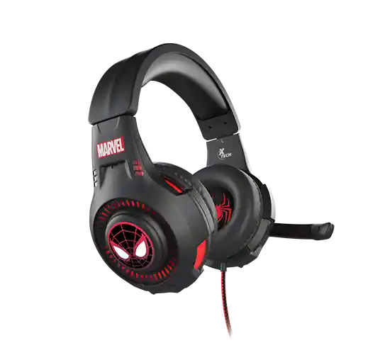 Auriculares iluminados diseñados para gamers, inspirados en Spider-Man Miles Morales. Almohadillas acolchadas de cuerina ofrecen gran comodidad. Cuenta con prácticos controles de volumen y silenciamiento en línea. Compatible con múltiples plataformas, funciona con PCs, computadoras portátiles y dispositivos móviles.
