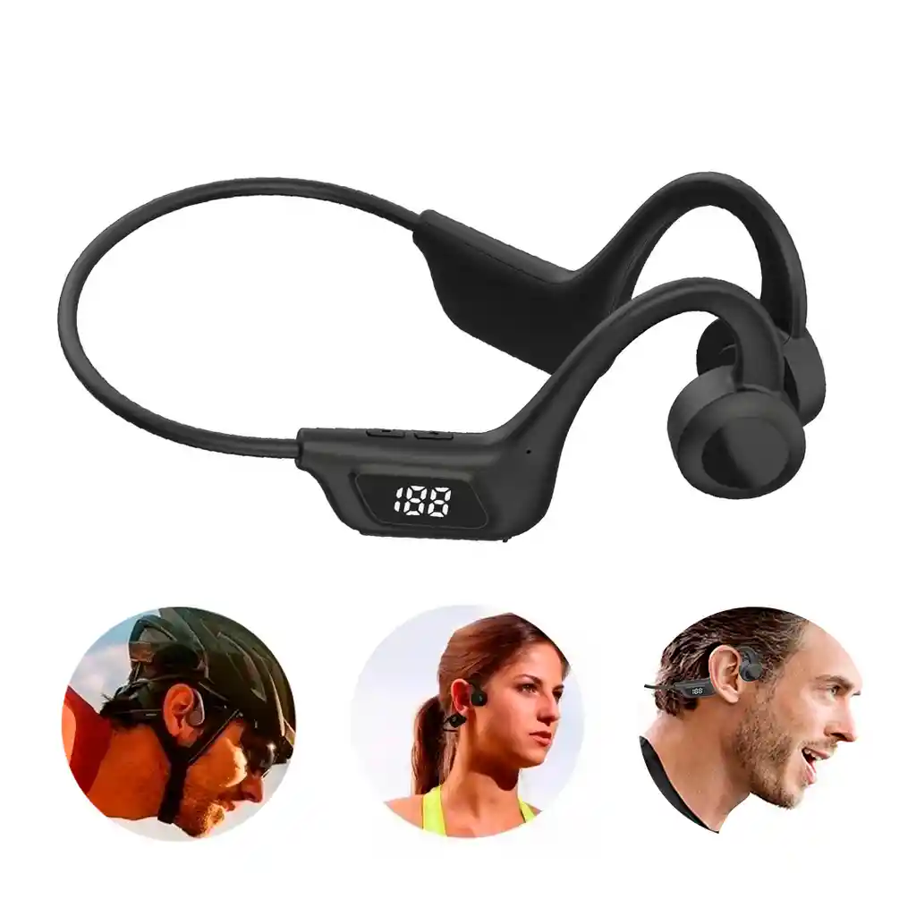 En la calle, en el colectivo, en el gimnasio o en la oficina, ten siempre a mano tus audífonos y ¡escápate de la rutina por un rato! Vas a poder disfrutar de la música que más te gusta y de tus podcasts favoritos cuando quieras y donde quieras. Principio de conducción ósea: a través de vibraciones de alta frecuencia y baja densidad, los huesos del oído emiten un sonido agradable, más seguro y más saludable. ¿Sudor? ¿Lluvia? No es un problema. Diseño de tapón impermeable. Protección contra el sudor, la lluvia y las salpicaduras. Características del producto: - Se puede insertar memoria micro SD de hasta 32GB (no incluida) - Angulo ajustable de 120º - El más nuevo Bluetooth 5,3 + EDR. - Cómodo de llevar, reducción de ruido autónoma inteligente Altavoz de bobina dinámica grande de 5,16 mm, calidad de sonido de alta fidelidad de nivel HiFi. - Tiene batería ultra y de larga duración alrededor de 5 a 6 horas - Pantalla digital que se visualiza la carga hasta un 100% - Sirve para los dispositivos de Apple y Android. - Impermeables al agua y al sudor - Alta calidad - No lástima los oídos , es ergonómico - Estos auriculares son prácticos para hacer deporte , caminar, ir en bicicleta y lo más importante es que puedes estar libre sin necesidad de tenerlos en tus manos y estar haciendo muchas actividades al mismo tiempo. - Pantalla digital LEDs, muestra la cantidad de carga claramente - La apariencia es elegante y simple - Tamaño pequeño, peso ligero, se puede llevar contigo - Admite todos los dispositivos y teléfonos móviles compatibles con Bluetooth - Luz de apoyo impermeable - Diseño impermeable, no hay necesidad de preocuparse por el sudor cuando se hace deporte - Admite reducción de ruido - Con micrófono - Tiempo de carga: 1-2 horas - Distancia de recepción de Bluetooth: 10M - Capacidad de la batería: 300 mAH 1. Tecnología de conducción ósea: Transmite música a través de los pómulos, asegurando que los oídos permanezcan completamente abiertos a los sonidos ambientales para una máxima conciencia durante largos períodos de tiempo. desgaste a largo plazo 2. Características de Bluetooth 5.3: Conexión continua, sin relleno, bajo consumo de energía, amplia compatibilidad. Emparejamiento rápido de latencia ultrabaja y transmisión estable 3. Diseño ergonómico: diseño ergonómico y liviano para una comodidad total en sus oídos 4. Diseño con cancelación de ruido: Resuelve el ruido ambiental durante las llamadas y proporciona una mejor experiencia de llamada 5. No necesitas conectar tu teléfono a Bluetooth, sólo inserta una memoria micro Sd y disfruta de tu música donde quiera que vayas. 6. El diseño sin orejas está cerca del hueso del oído y las ondas de sonido se transmiten directamente al sistema de inducción de sonido, que no daña los oídos y disfruta de música de alta calidad. 7. La conducción ósea permite escuchar música y prestar atención a los sonidos externos al mismo tiempo, mantener la vigilancia y mejorar la seguridad de los deportes al aire libre. Diseño liviano, no se caerá durante el ejercicio ni produce dolor durante el uso prolongado. ---------- FUNCIONES --------- 1. Encendido: Mantén presionado el botón del auricular durante 2 segundos "o" para encenderlo(ícono del botón). 2. Apagado: Mantén presionado el botón del auricular durante 2 segundos "o" para apagarlo (ícono del botón). 3. Contestar/Colgar llamadas: Para responder una llamada entrante, presiona "o" para finalizar una llamada, presiona "o" una vez. 4. Rechazar llamadas: Mantén presionado el botón "o" durante 2 segundos. 5. Reproducir/Pausar música: Durante la reproducción de música, presiona "o" una vez para pausar "o" reanudar la reproducción. 6. Ajuste de volumen: Mantén presionado el botón durante 1.5 segundos para aumentar el volumen, mantén presionado durante 1.5 segundos para disminuir el volumen. Habrá un tono "beep" cuando alcances el volumen máximo. El paquete incluye 1 * Audífonos óseos bluetooth 1 * Cable de carga tipo C