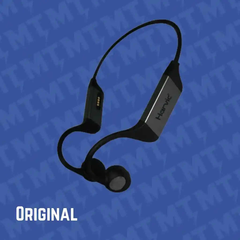 Audífonos inalámbricos Harvic con sonido por transmisión ósea. Ofrecen hasta 10 horas de audio con una sola carga. Incluye: - Audífonos COBT-599. - Cable de carga. - Tapones extra. Calidad: Original.