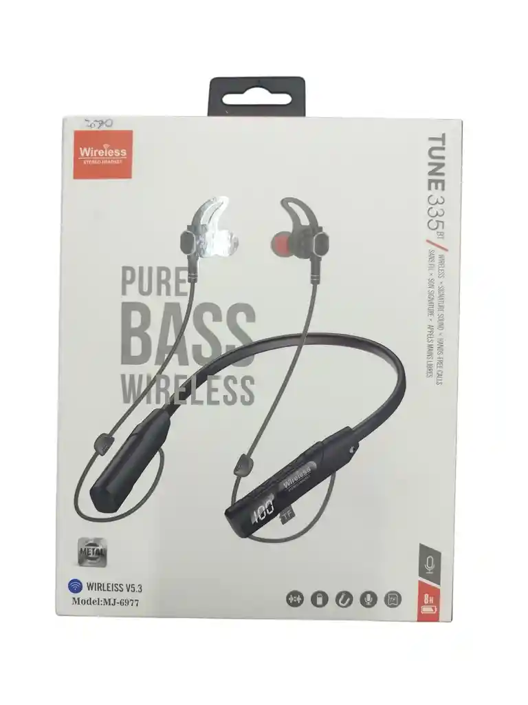 Modelo: JBL TUNE 335BT (también referenciados como TUNE355). Características: Incluyen micrófono integrado para llamadas manos libres y control de reproducción de música. Diseño: Cuentan con un diseño ergonómico de cuellera para comodidad en uso prolongado. Sonido: Tecnología "Pure Bass" para realce de bajos.