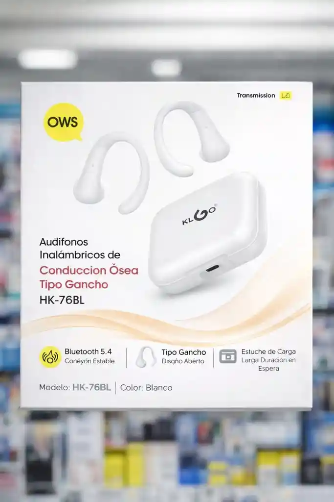 ofrecen una experiencia open ear (oído abierto) que te permite escuchar música y llamadas sin aislarte del entorno. Gracias a su diseño con gancho para la oreja, son cómodos y seguros para actividades prolongadas. Incorporan Bluetooth 5.4, cancelación de ruido y un tiempo de espera ultralargo. Además, pueden utilizarse como traductores en tiempo real mediante una aplicación compatible, ideales para viajes, trabajo y deporte. ✅ Características principales Marca: KLGO Modelo: HK-76BL Tipo: Audífonos de conducción ósea Diseño: Abierto (Open Ear) con gancho para la oreja Conectividad: Bluetooth 5.4 Tecnología: Verdadero inalámbrico Cancelación de ruido: Sí Uso: Música, llamadas y traducción en tiempo real (con app) Transmisión: Inalámbrica OWS: Sí (Open Wearable Stereo) Tiempo de espera: Ultralargo 🎧 Beneficios destacados Mantiene el oído libre, ideal para deporte y movilidad urbana Mayor seguridad al escuchar el entorno Ajuste cómodo y estable Compatible con Android y iOS Función innovadora de traducción en tiempo real