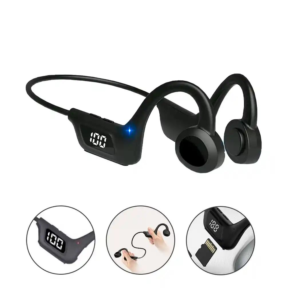 En la calle, en el colectivo, en el gimnasio o en la oficina, ten siempre a mano tus audífonos y ¡escápate de la rutina por un rato! Vas a poder disfrutar de la música que más te gusta y de tus podcasts favoritos cuando quieras y donde quieras. Principio de conducción ósea: a través de vibraciones de alta frecuencia y baja densidad, los huesos del oído emiten un sonido agradable, más seguro y más saludable. ¿Sudor? ¿Lluvia? No es un problema. Diseño de tapón impermeable. Protección contra el sudor, la lluvia y las salpicaduras. Características del producto: - Se puede insertar memoria micro SD de hasta 32GB (no incluida) - Angulo ajustable de 120º - El más nuevo Bluetooth 5,3 + EDR. - Cómodo de llevar, reducción de ruido autónoma inteligente Altavoz de bobina dinámica grande de 5,16 mm, calidad de sonido de alta fidelidad de nivel HiFi. - Tiene batería ultra y de larga duración alrededor de 5 a 6 horas - Pantalla digital que se visualiza la carga hasta un 100% - Sirve para los dispositivos de Apple y Android. - Impermeables al agua y al sudor - Alta calidad - No lástima los oídos , es ergonómico - Estos auriculares son prácticos para hacer deporte , caminar, ir en bicicleta y lo más importante es que puedes estar libre sin necesidad de tenerlos en tus manos y estar haciendo muchas actividades al mismo tiempo. - Pantalla digital LEDs, muestra la cantidad de carga claramente - La apariencia es elegante y simple - Tamaño pequeño, peso ligero, se puede llevar contigo - Admite todos los dispositivos y teléfonos móviles compatibles con Bluetooth - Luz de apoyo impermeable - Diseño impermeable, no hay necesidad de preocuparse por el sudor cuando se hace deporte - Admite reducción de ruido - Con micrófono - Tiempo de carga: 1-2 horas - Distancia de recepción de Bluetooth: 10M - Capacidad de la batería: 300 mAH 1. Tecnología de conducción ósea: Transmite música a través de los pómulos, asegurando que los oídos permanezcan completamente abiertos a los sonidos ambientales para una máxima conciencia durante largos períodos de tiempo. desgaste a largo plazo 2. Características de Bluetooth 5.3: Conexión continua, sin relleno, bajo consumo de energía, amplia compatibilidad. Emparejamiento rápido de latencia ultrabaja y transmisión estable 3. Diseño ergonómico: diseño ergonómico y liviano para una comodidad total en sus oídos 4. Diseño con cancelación de ruido: Resuelve el ruido ambiental durante las llamadas y proporciona una mejor experiencia de llamada 5. No necesitas conectar tu teléfono a Bluetooth, sólo inserta una memoria micro Sd y disfruta de tu música donde quiera que vayas. 6. El diseño sin orejas está cerca del hueso del oído y las ondas de sonido se transmiten directamente al sistema de inducción de sonido, que no daña los oídos y disfruta de música de alta calidad. 7. La conducción ósea permite escuchar música y prestar atención a los sonidos externos al mismo tiempo, mantener la vigilancia y mejorar la seguridad de los deportes al aire libre. Diseño liviano, no se caerá durante el ejercicio ni produce dolor durante el uso prolongado. ---------- FUNCIONES --------- 1. Encendido: Mantén presionado el botón del auricular durante 2 segundos "o" para encenderlo(ícono del botón). 2. Apagado: Mantén presionado el botón del auricular durante 2 segundos "o" para apagarlo (ícono del botón). 3. Contestar/Colgar llamadas: Para responder una llamada entrante, presiona "o" para finalizar una llamada, presiona "o" una vez. 4. Rechazar llamadas: Mantén presionado el botón "o" durante 2 segundos. 5. Reproducir/Pausar música: Durante la reproducción de música, presiona "o" una vez para pausar "o" reanudar la reproducción. 6. Ajuste de volumen: Mantén presionado el botón durante 1.5 segundos para aumentar el volumen, mantén presionado durante 1.5 segundos para disminuir el volumen. Habrá un tono "beep" cuando alcances el volumen máximo. El paquete incluye 1 * Audífonos óseos bluetooth 1 * Cable de carga tipo C