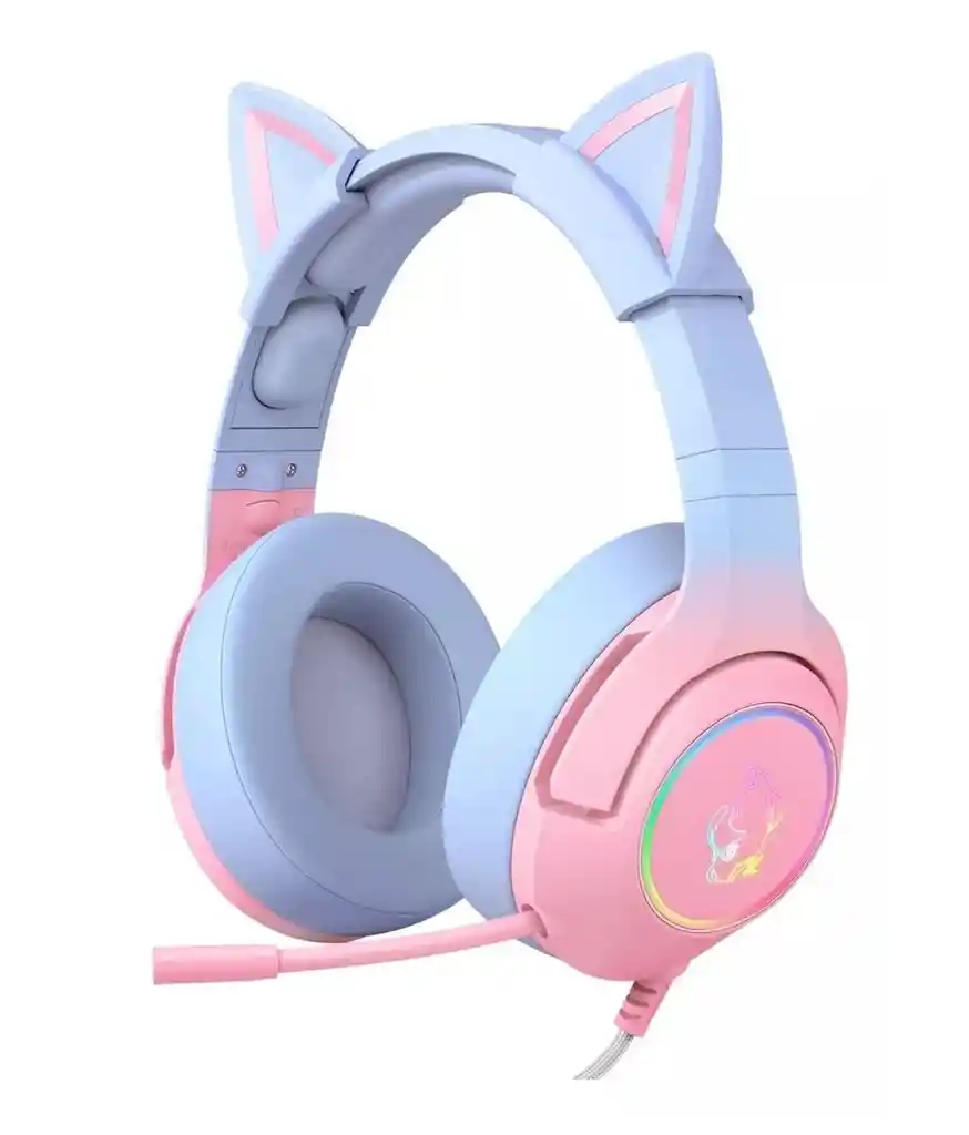 CARACTERÍSTICAS • Efecto de luz degradado RGB • Diseño Morandi bicolor • Sonido envolvente estéreo • Uso cómodo de orejeras grandes • Micrófono de cancelación de ruido de alta fidelidad • Unidad de altavoz de gran tamaño Diseño de cojín de garra de gato con haz de cabeza de esponja gruesa Sonido de juego estéreo 3.1 que ayuda a mejorar el efecto de sonido auditivo El micrófono con cancelación de ruido se comunica de manera eficiente para disfrutar del "tiempo para mí" durante el juego Se combina fácilmente con PS4, PS5, PS Vita, computadora portátil, PC, tabletas, Teléfonos inteligentes, Nintendo y varios otros modelos