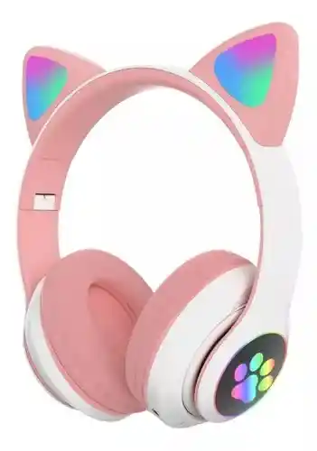 AUDIFONOS DIADEMA, BLUETOOTH,OREJAS DE GATO RGB DESCRIPCIÓN DE PRODUCTO: Bonita DIADEMA Oreja de Gato, luz intermitente LED: los audífonos diadema Bluetooth cuentan con un bonito diseño de Oreja de Gato y elegantes luces LED rgb de 7 colores. Este auricular tiene un diseño único, elegante y es adecuado para cualquier ocasión. Cuenta con Almohadillas suaves profesionales y diseño plegable conveniente: Los auriculares están diseñados ergonómicamente con orejeras cómodas, y hay una diadema ajustable que puede ajustar la longitud para que se sienta más cómodo. Adicional a esto también te da la opción modo de cable e inalámbrico: los últimos auriculares con funciones tanto cableadas como inalámbricas; Modo inalámbrico: los auriculares se pueden utilizar con conexión Bluetooth inalámbrica con dispositivos habilitados para Bluetooth como teléfonos móviles, tablets, pc. También maneja control incluido en la orejera su función: pasa a la siguiente canción/canción anterior, y control de volumen al usarlo. Modo de cable: puede utilizarlo como un auricular con cable con una conexión de cable de Audio de 3,5mm para que los auriculares nunca se apaguen incluso cuando sus auriculares se hayan agotado la batería.