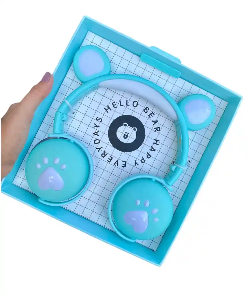 Lleva tu música a todos lados con estos audífonos inalambricos via bluetooth con orejas d , tiene leds en la parte de las orejas que los hace aun mas divertidos y las luces cambian de color . Cuentan con micrófono integrado lo cual los hace excelentes para Pc , llamadas o video llamadas -Bluetooth v 5.0 -Tiempo de la carga de 2-3 horas . -Bateria interna recargable de 360 mAh - Entrada auxiliar 3.5 mm para uso alambrico. - Tiempo de uso escuchando música promedio: 4-6 horas. - Distancia de Alcance: 10 m. - Altavoz: 40 mm. - Frecuencia inalambrica: 2.402 - 2.480 GHz. - Cuenta con Luz LED. Incluye : 1 audifonos Bluetooth 1 Cable usb para carga y 1 cable 1x1
