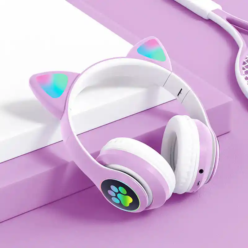 ......AUDÍFONO DIADEMA OREJAS DE GATO CON LUZ LED...... ~ DESCRIPCIÓN DE PRODUCTO 1. Función Bluetooth + MP3 compatible con reproducción de música estéreo, llamadas telefónicas. 2. Admite todos los dispositivos de audio con capacidad Bluetooth, como teléfonos móviles, tabletas, ordenadores portátiles, ordenadores, etc. 3. Conector de audio de 3,5mm, proporciona una conexión sencilla por cable de una variedad de dispositivos sin Bluetooth. 4. Te permite responder o rechazar llamadas telefónicas en cualquier momento y en cualquier lugar. 5. Cargado por USB, batería recargable, práctico y práctico. 6. Tiempo de reproducción de hasta 8 ~ 10 horas y tiempo de conversación de hasta 8 horas, tiempo en espera de hasta 148 horas. 7. Buena calidad, diseño plegable y bisagras de longitud ajustable, muy cómodas de llevar y fáciles de llevar. 8. La mejor opción para escuchar música, ver películas, chatear en línea, etc. 9. Con la tarjeta SD insertada, sin ningún dispositivo bluetooth, todavía puede disfrutar de la música en cualquier momento y en cualquier lugar.