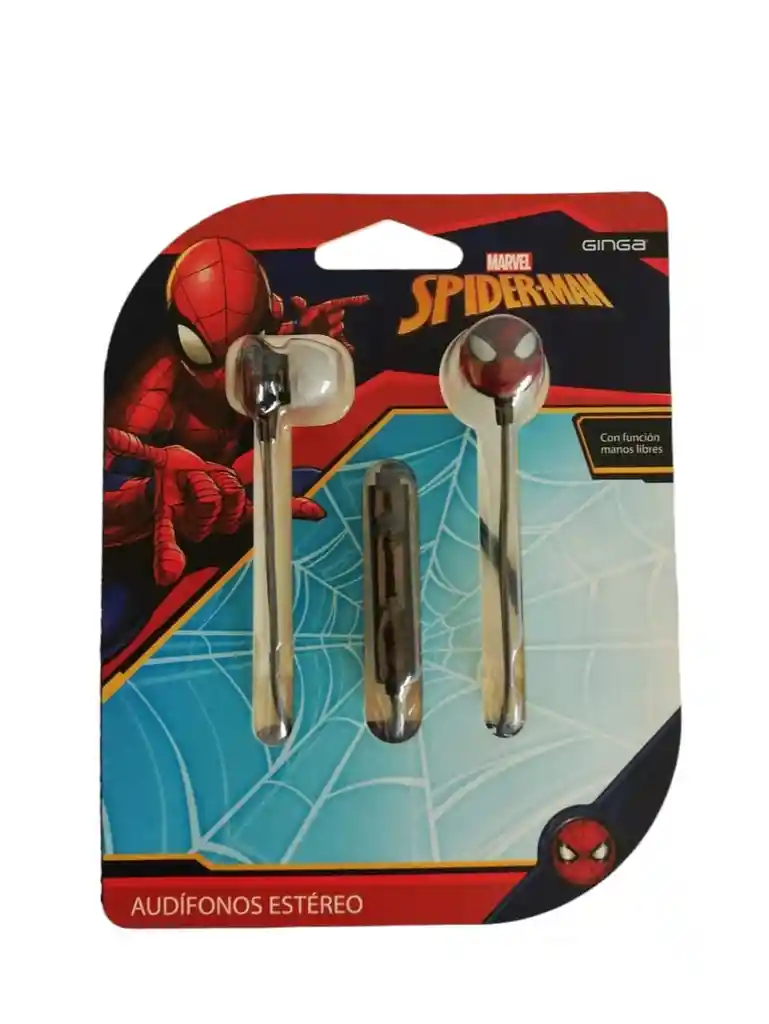 Audífonos Estéreo Manos Libres Spider-man Ginga disponible en Negro Diseño único de Spider-man. Gracias a su confortable molde auricular flexible, reduce el ruido y se adapta a tu oído. Compatible con MP3/MP4, smartphone, tablets y dispositivos móviles. Potencia y fidelidad de sonido. Características: - Rango de frecuencia de 20-20000 MHz. - Sensibilidad: 102 dB. - Impedancia: 16 Ohm. - Máxima potencia de salida: 60 mW. - Longitud de cable: 1.2 m. - Altavoz: 10 mm (Diámetro).