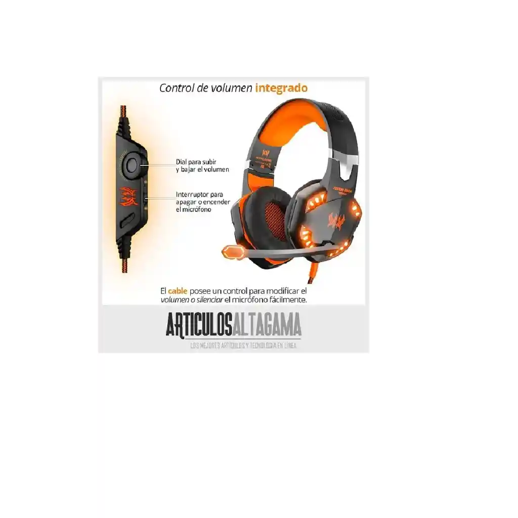 ¡Tus Juegos. Tus Sonidos. Tu Música. Tu Vida!Los auriculares perfectos para vivir tus vídeo juegos. con almohadillas de excelente calidad que no dejaran sentir molestias en tus oídos durante horas si lo prefieres. con cancelación de ruidos exteriores que te darán máxima concentración.CARACTERÍSTICAS:-Tamaño de bocina: 50mm-Impedancia: 16ohms-Sensibilidad: 105+-3dB-Rango de frecuencia: 20hz-20khz-Micrófono: 6.0*5mm-Sensibilidad de micrófono:-38+-3dB-Impedancia de micrófono: 2.2K ohms-Largo del cable aproximado: 2.1m-Voltaje de trabajo de led: dc5v-Conectores de audio y micrófono de 3.5mm con control de volumen.NOTA: El conector USB alimenta la iluminación Led.TE ENTREGAMOS:1-Audífonos Kotion G20001-Cable adaptador de audio 2 a 1