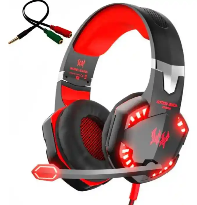 ¡Tus Juegos. Tus Sonidos. Tu Música. Tu Vida!Los auriculares perfectos para vivir tus vídeo juegos. con almohadillas de excelente calidad que no dejaran sentir molestias en tus oídos durante horas si lo prefieres. con cancelación de ruidos exteriores que te darán máxima concentración.CARACTERÍSTICAS:-Tamaño de bocina: 50mm-Impedancia: 16ohms-Sensibilidad: 105+-3dB-Rango de frecuencia: 20hz-20khz-Micrófono: 6.0*5mm-Sensibilidad de micrófono:-38+-3dB-Impedancia de micrófono: 2.2K ohms-Largo del cable aproximado: 2.1m-Voltaje de trabajo de led: dc5v-Conectores de audio y micrófono de 3.5mm con control de volumen.NOTA: El conector USB alimenta la iluminación Led.TE ENTREGAMOS:1-Audífonos Kotion G20001-Cable adaptador de audio 2 a 1