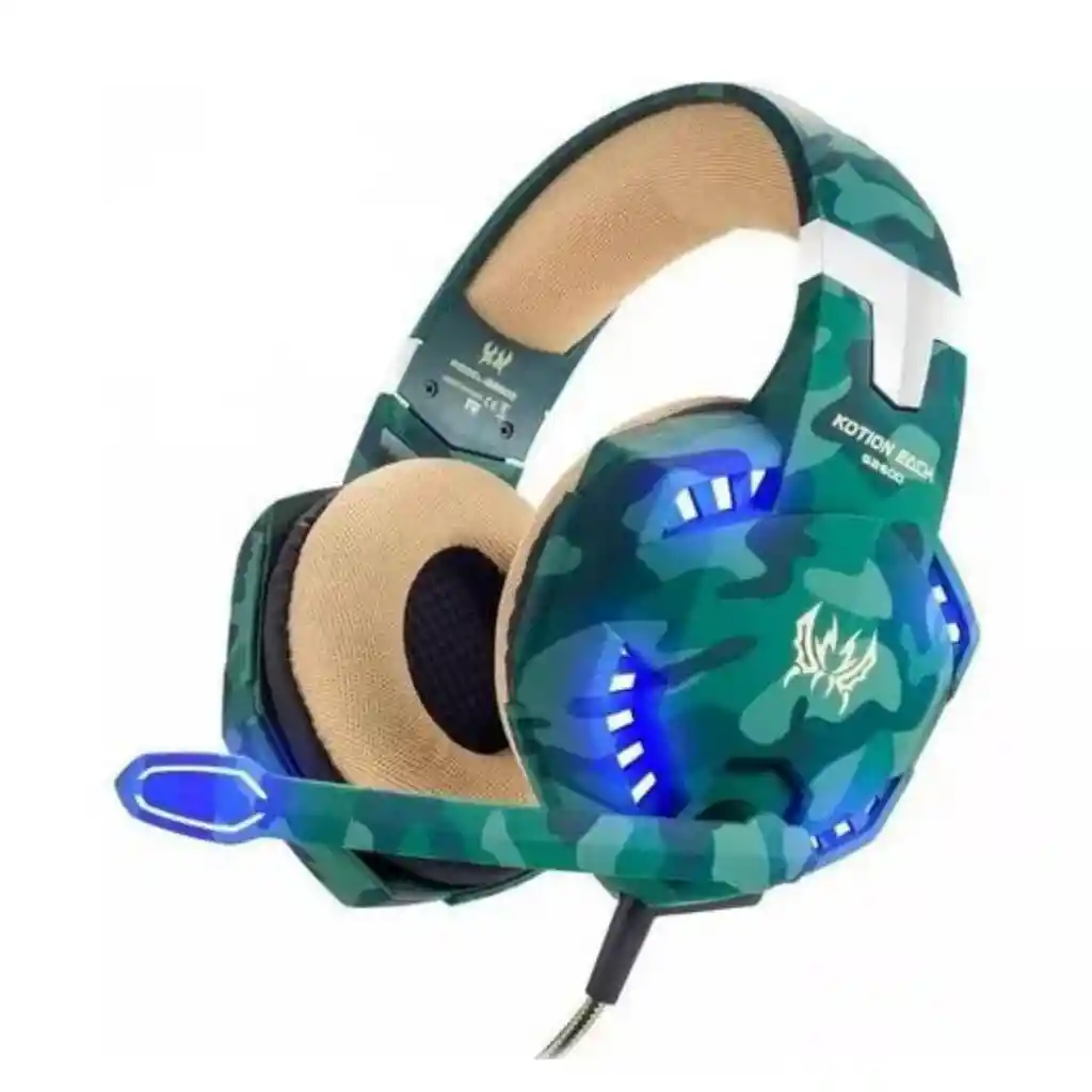 DESCRIPCION: ¡Tus Juegos, Tus Sonidos, Tu Música, Tu Vida! Los auriculares perfectos para vivir tus vídeo juegos, con almohadillas de excelente calidad que no dejaran sentir molestias en tus oídos durante horas si lo prefieres, con cancelación de ruidos exteriores que te darán máxima concentración. NOTA: Únicamente diseño camuflado verde oscuro. CARACTERÍSTICAS: -Tamaño de bocina: 50mm -Impedancia: 32ohms -Sensibilidad: 108+-36db -Rango de frecuencia: 20hz-20khz -Micrófono: 6.0*5.0mm -Sensibilidad de micrófono:-38+-3db -Impedancia de micrófono: 2.2k ohms -Largo del cable: 2.1m -Voltaje de trabajo de led: dc5v -Conectores de audio y micrófono de 3.5mm con control de volumen