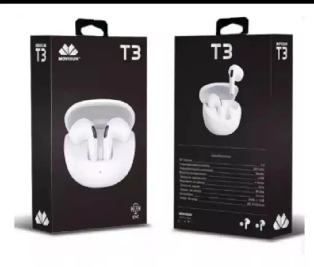 audifonos inalambricos movisun t3 con durabilidad de carga de 7h y cobertura de coneccion de 10m
