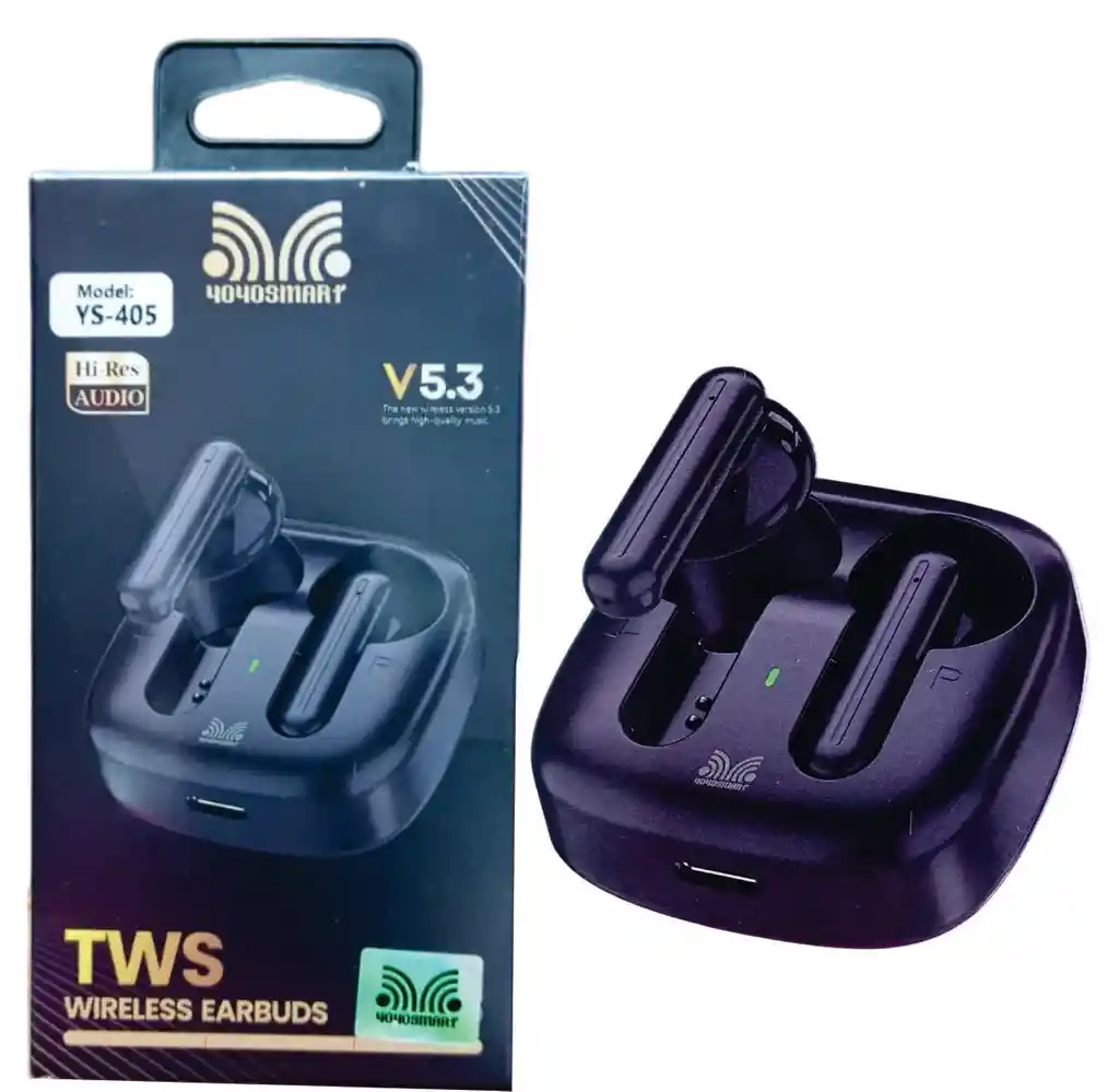 Audífonos inalámbricos 4040SMART modelo YS-405. Tecnología: Utilizan Bluetooth V5.3 para la conexión inalámbrica. Diseño: Son audífonos tipo TWS (True Wireless Stereo) in-ear. Audio: Cuentan con certificación Hi-Res Audio para alta calidad de sonido. Incluye: Estuche de carga compacto.