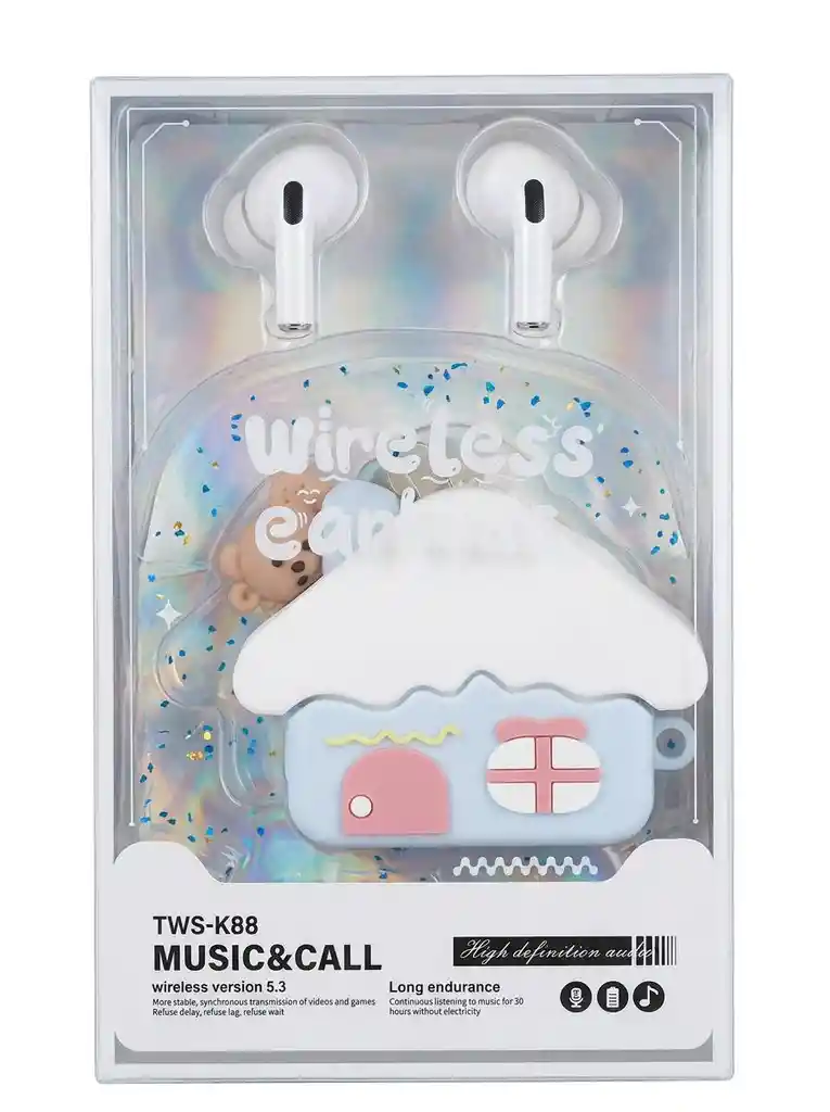 AUDIFONOS INALAMBRICOS CON PROTECTOR DE SILICONA REFERENCIA TWS-K88