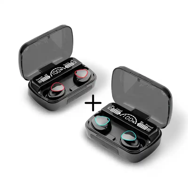 Los audífonos M10 son bluetooth, recargables con una duración entre 1 y 3 horas en uso continuo dependiendo el volumen con el que los escuchas, caja con indicador de batería, función power. Envío gratis en Bogotá.
