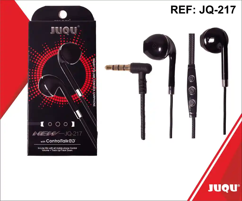 🎧 Audífonos Manos Libres Juqu JQ-217 Tipo L – Color Negro 🔊📲 ¡Llamadas claras, música nítida y diseño resistente! Los audífonos Juqu JQ-217 están diseñados para acompañarte todo el día con comodidad y estilo. Perfectos para quienes buscan durabilidad y excelente calidad de audio. 🎶🖤 ✅ Características destacadas: 🔌 Entrada 3.5 mm tipo L (ángulo 90°) que reduce el desgaste del cable y mejora la durabilidad 🎧 Sonido estéreo envolvente, ideal para música, llamadas y videos 🎤 Micrófono integrado para llamadas manos libres 🎛️ Botón multifunción y control de volumen para mayor practicidad 🖤 Color negro elegante, ideal para cualquier ocasión 🕊️ Diseño ergonómico y ligero para un uso cómodo por horas 📦 Incluye: 1 par de audífonos con micrófono y controles. 🎯 Compatibles con: Celulares, tablets, computadores y otros dispositivos con entrada 3.5 mm