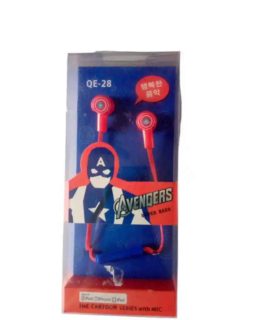 TENEMOS PUNTO FISICO EN LA CIUDAD DE CALI Auriculares divertidos con personajes infantiles. Auricular 10 mm Tamaño del altavoz 96:3dB (a 1 KHz 0,5 Vrms) Sensibilidad: 160 Impedancia: 20 20,000Hz Respuesta frecuente: 3,5 mm Tipo de enchufe: s120cm /Longitud del cable Micrófono 04x1.5mm /Dimensiones /Sensibilidad: -42dB+/-3dB /Respuesta frecuente: 3016,000Hz /Directividad: /Omnidireccional Características El nuevo micrófono diseñado puede ser compatible con iPhone/HTC/S Samsung para comunicarse por telefono BuilHin O10mm Rubidio hierro boro Barrie altavoz magnético dri Ver componentes, reproduce una calidad de sonido clara y detalles de sonido, una experiencia de sonido más completa. sin demora en la comunicación eficiencia Forma de auriculares ultrapequeña, ergonómica, comodidad de uso prolongado. El micrófono es sensible y la forma es pequeña y exquisita. QE-28
