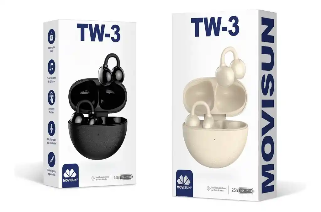 Los audífonos inalámbricos Movisun TW-3 OWS son la opción ideal para quienes buscan calidad de sonido y comodidad en un solo dispositivo. Con un formato OWS y tecnología TWS, estos audífonos ofrecen una experiencia auditiva envolvente, permitiendo disfrutar de música y llamadas sin interrupciones. Su conectividad Bluetooth garantiza una conexión estable y rápida con tus dispositivos, eliminando la molestia de los cables. El modelo TW-3 OWS incluye un práctico estuche de carga que proporciona hasta 25 horas de autonomía, permitiéndote llevar tu música a todas partes sin preocuparte por la batería. Equipados con micrófono, son perfectos para realizar llamadas con claridad, ya sea en casa o en movimiento. Su diseño ergonómico asegura un ajuste cómodo, ideal para largas sesiones de uso.