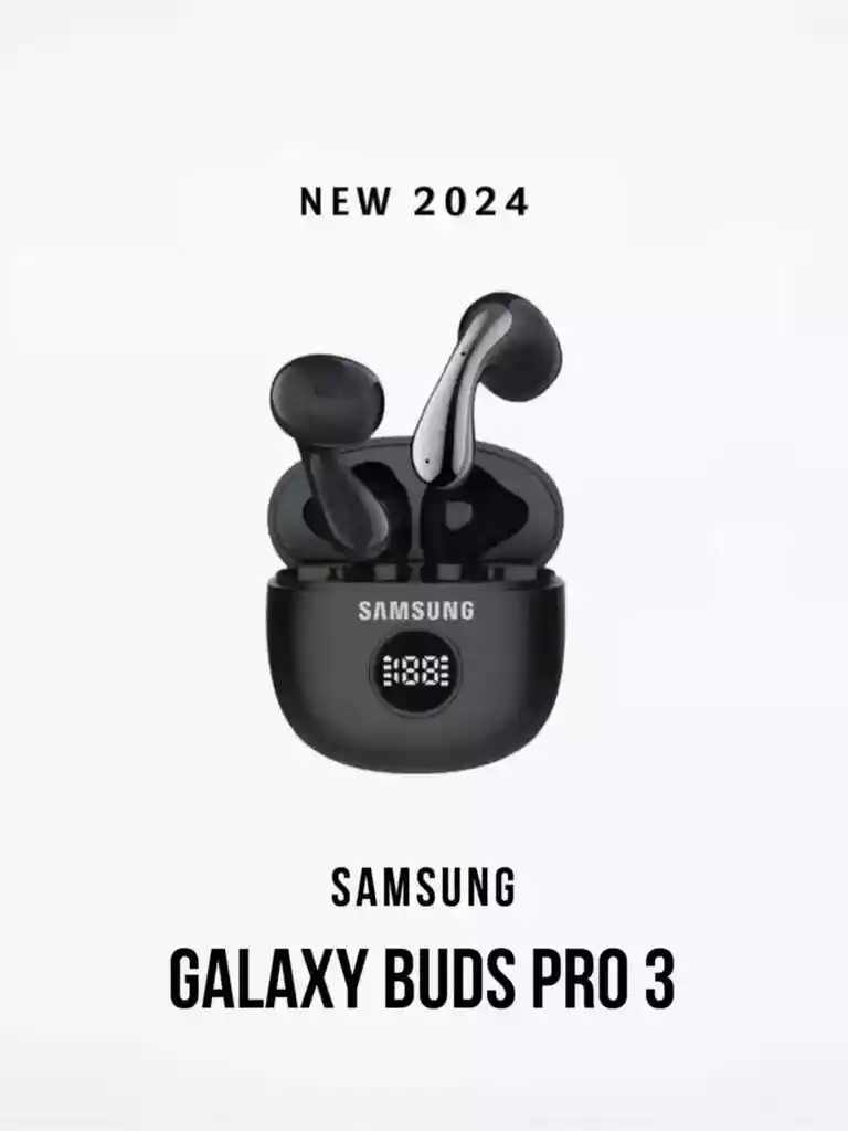 GENERICO Galaxy Buds 3 Pro 2024 Alta Calidad 1:1 Aaa Características: inalámbrico, reducción de ruido en llamadas, Control táctil, con caja de carga 1:1 Apto para atender llamadas telefónicas, videoconferencias y escuchar musicar con sonido de AKG Capacidad de la batería del auricular: 100 mAh Batería de la caja de carga: 400 mAh Tiempo de conversación (volumen medio): Hasta 5 h Tiempo de Música (volumen medio): Hasta 5 h Tiempo en espera: 240 h Tiempo de carga de auriculares: 60 min Tiempo de carga de la caja de carga: 90 min Impedancia de los altavoces: 16Ω Respuesta de frecuencia del altavoz: 20Hz-20 KHz Potencia nominal del altavoz: 3 mW Sensibilidad del altavoz (1 K): 98dB Versión Bluetooth: 5,0 + EDR Distancia de transmisión: 7-10 m Consumo de energía: 13-15mA Sonido envolvente: escúchalo como si estuvieras allí Diseño ergonómico para un ajuste cómodo Disfruta de hasta 20 horas de batería con la carga del estuche Incluye: Estuche de carga Audifonos Cable de carga tipo C Manual de uso Acerca de este producto Los Galaxy Buds 3 Pro Negros cuentan con un sistema de audio de alta fidelidad (24 bits) que permitirá escuchar cualquier contenido más claro y preciso, con un sonido estable y de alta calidad.