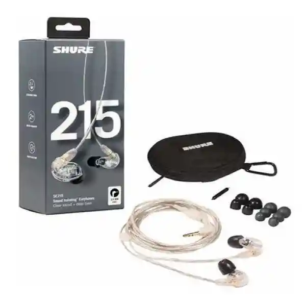 Audifonos Shure Se 215cl Estudio In ear Se 215 Se215 Auricular intracanal estéreo de baja masa con transductor Single HighDefinition MicroDriver de alto rendimiento. Respuesta en Frecuencia 22Hz 17,5kHz. Sensibilidad @ 1 kHz: 107 dB SPL/mW. Impedancia 20?. Diseño Sound Isolating que bloquea hasta 37dB los ruidos exteriores. Incluye almohadillas de varios tamaños y tipos para un máximo confort, además de funda de transporte y cable removible en cada auricular de fijo de 161 cm. Shure Incorporated es un fabricante de electrónica de audio profesional, produce generalmente micrófonos y otros componentes de audio, pero también produce audífonos para una variedad de aplicaciones de audio, incluyendo el uso en el escenario y reproductores de MP3. Sensibilidad (1kHz) 107 dB SPL/mW Impedancia (1kHz) 20 O Atenuación de ruido: Up to 37 dB Rango de frecuencia: 22Hz 17.5kHz Input Connector Gold plated 3.5 mm (1/8”) Cable 64” Detachable (at ear)