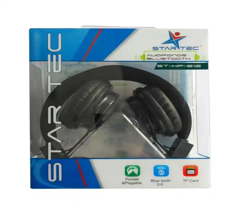Audifonos Startec Bluetooth St-Hp-B16 Negro Descripción Audífono Bluetooth Soporta Tarjeta Micro sd(tf) Soporta Música Formato Mp3 wav Consumo de Energía 0.25 w Temperatura de Funcionamiento 0-50 C Margen Snr Señal Ruido 80 Db Potencia de Salida Del Auricular (l) 10Mw R 10Mw Voltaje de la Batería de Litio 3.7V Capacidad de la Batería de Litio 300 Mah Tiempo de Carga de la Batería: 4 Horas Tiempo de Trabajo de la Batería: 6 Horas Tiempo Espera Del Bluetooth: 24 Horas Enchufe Del Auricular 3.5 mm