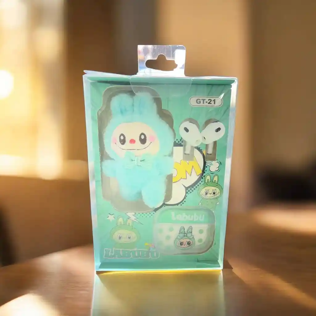 Auriculares Labubu inalámbricos: disfruta de sonido de alta fidelidad sin cables con estos audífonos Bluetooth compactos. Incluyen estuche protector con diseño moderno y un llavero para llevarlos a todos lados. Diseño ergonómico, carga rápida y hasta varias horas de uso. Perfectos para música, llamadas o gaming, con estilo y funcionalidad.