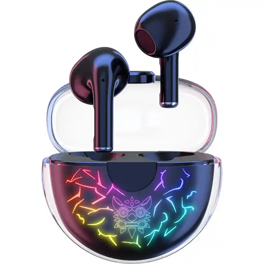auricular inalámbrico bluetooth RGB color mágico iluminación fresca HIFI calidad de sonido BT5. Iluminación fantasma RGB, explotando el campo de batalla: iluminación fría agrietada RGB, más cómoda de usar en los juego. Reducción de ruido inteligente, calidad de sonido de alta fidelidad: reducción de ruido de voz, nueva afinación, verificación repetida, presentación de llamadas en un idioma más claro y restauración de detalles de sonido. El diseño liviano hace que sea más fácil para sus oídos Tiempo de carga de auriculares: 1.5H Tiempo de carga de la caja: 1.5H Tiempo de trabajo: 3-4 horas Tiempo en espera: hasta 100
