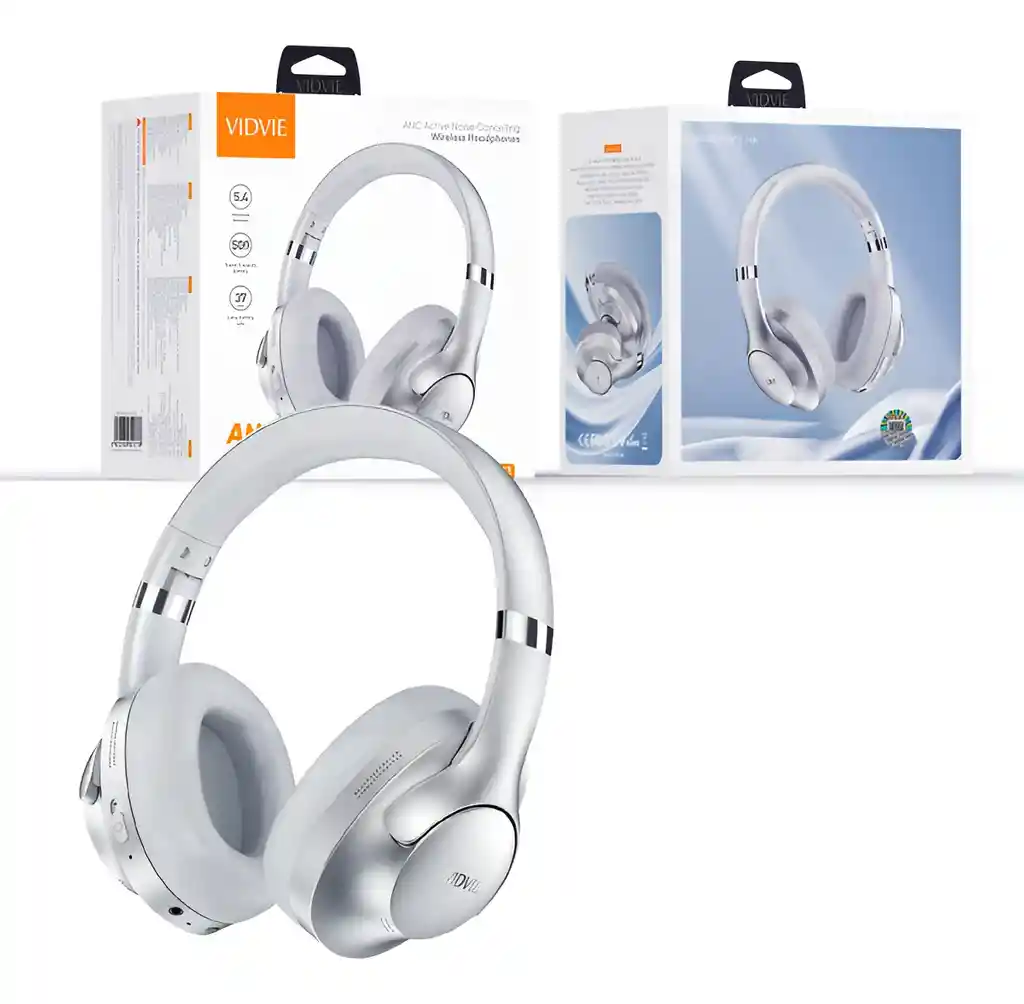 AURICULARES AUDÍFONOS INALÁMBRICOS ANC CANCELACIÓN DE RUÍDO VIDVIE BBH2113 Auriculares inalámbricos con cancelación activa de ruido ANC Tecnología inalámbrica avanzada: Con Bluetooth 5.4, el BBH2113 garantiza una conexión estable, ofreciendo libertad y flexibilidad en su escucha. Duración de la batería de larga duración: Equipado con una batería de litio incorporada de 3.7V/500mAh, los auriculares ofrecen aproximadamente 37 horas de reproducción. Ligero y portátil: el diseño plegable hace que estos auriculares sean fáciles de transportar, perfectos para el estilo de vida en movimiento. Ajustable y cómodo: diseñado para adaptarse a la gran mayoría de las personas, el tamaño ajustable y las orejeras de piel de albúmina garantizan comodidad, incluso durante largos períodos de uso. ESPECIFICACIONES: * Nombre: Auriculares * Marca: VIDVIE * Modelo: BBH2113 * Color: GRIS * Chip Bluetooth: JL7006 * Versión de Bluetooth: V5.4 * Capacidad de la batería: 3,7 V, 500 mAh * Valor de reducción de ruido: -20 ± 3 dB * Frecuencia de reducción de ruido: 20-500 HZ * Especificaciones del altavoz: 40 mm * Tiempo de juego: Bluetooth: 37 horas * ANC+Bluetooth: 32 horas * Función: (ANC) Modo de reducción de ruido, modo de juego, modo de música * Orejeras con colchón de aire de proteína * Diseño plegable ligero * Diadema retráctil * Admite cable de audio AUX PAQUETE INCLUYE: * 1 Auriculares Vidvie BBH2113