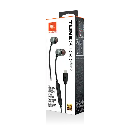 Auriculares intraaurales compatibles con audio de alta resolución y sonido JBL Pure Bass, conectividad USB-C - Conectividad USB-C garantiza la compatibilidad con una amplia gama de dispositivos - Tres botones en el cable plano antienredos te permiten controlar la reproducción de música, el ajuste de volumen y los preajustes EQ, así como responder llamadas donde quieras con el micrófono integrado. - Respuesta de frecuencia 20 Hz-40 kHz - Impedancia: 16 Ω Sí - Sensibilidad 98 dB SPL a 1 kHz 1 mW - Sensibilidad del micrófono -42 dBV/Pa a 1 kHz - Tamaño amplificador dinámico de 9 mm - Color negro. - Garantía en tienda por defectos de fabrica.
