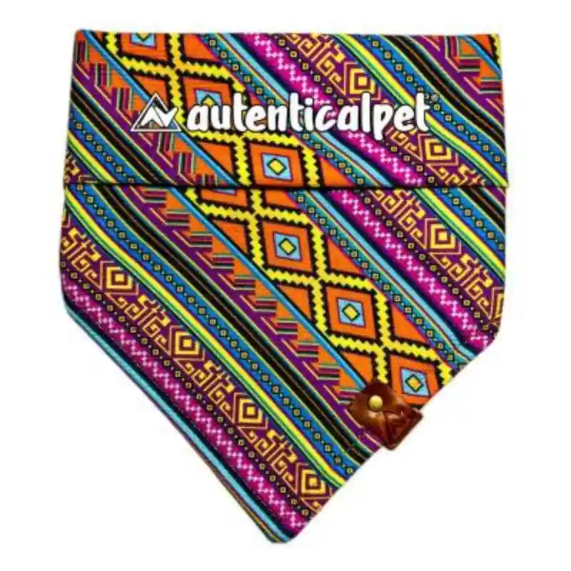 Pañoleta en paño poliester con diseño étnico peruano, para gatos y perros de razas pequeñas de cualquier edad. Esta pañoleta cuenta con detalles en cuero y broches de seguridad para ajuste y evitar pérdida. Muy cómoda y de alta calidad. Tamaño de la mascota: Pequeño. Etapa de la vida: Todas las Edades.