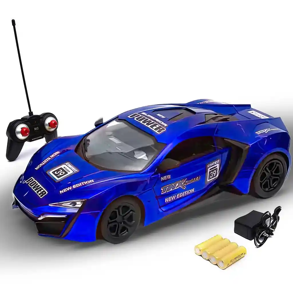 Auto deportivo RC de 43 cm con diseño italiano, batería recargable por USB y luces LED frontales y traseras. Fabricado en ABS resistente y con control remoto de fácil uso. Perfecto para juego interior y exterior, así como para coleccionistas.