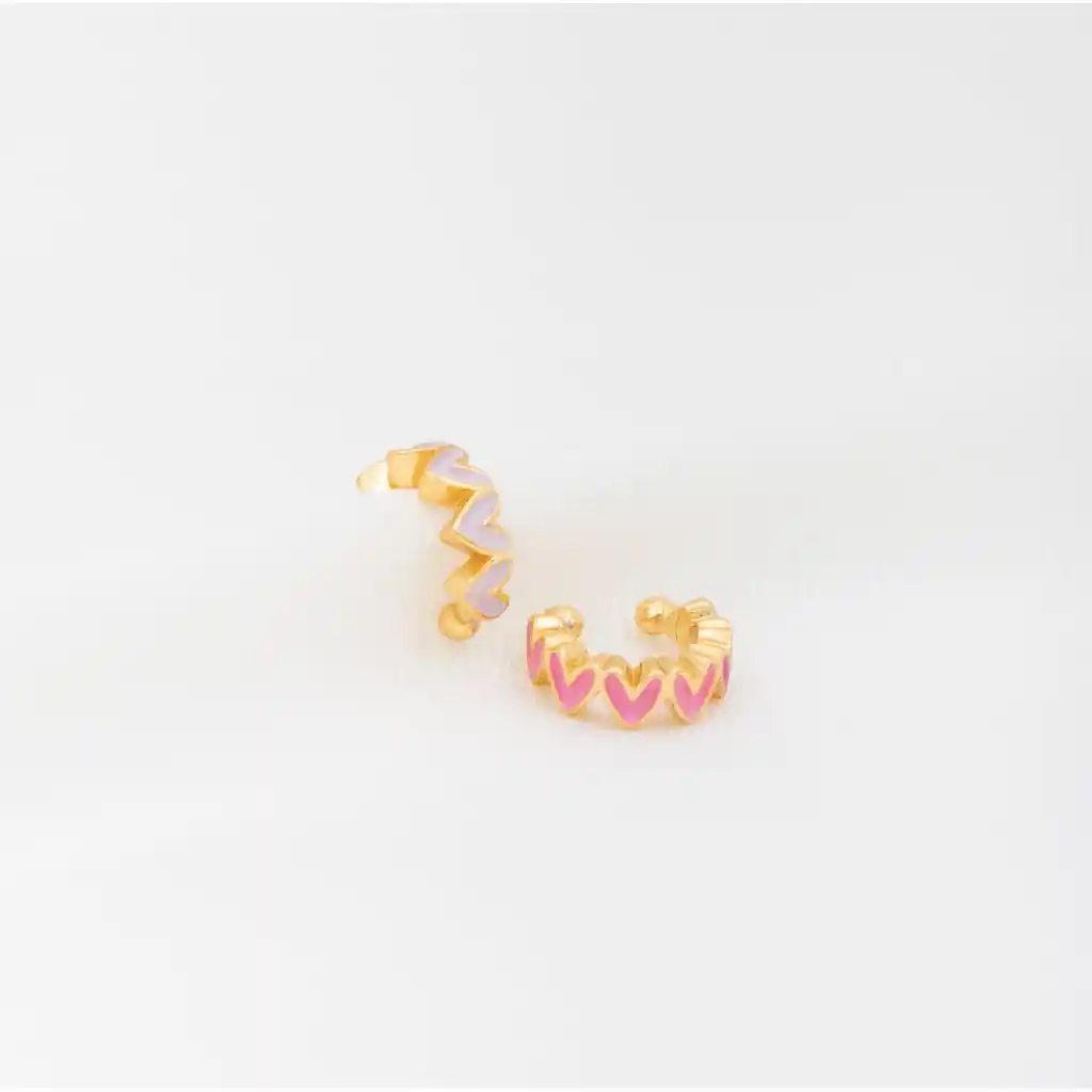 Earcuff elaborados en Zamak (aleación de metales) con baño de oro de 24k Hecho a mano en Colombia Incluye: 2 unidades de earcuff de corazón. NO SE PONEN NEGRAS Garantía en los aretes de 2 meses en el baño. Ten presente que algunas de las fotos de apoyo incluyen otros productos que se venden por separado. ¿Es un regalo? Incluye en tu compra nuestro empaque de regalo y sorprende a esa persona especial.