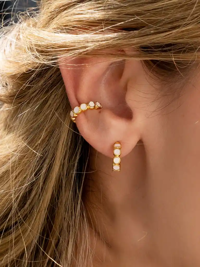 Elaborados Zamak (aleación de metales) con baño de oro de 24k. Postes antialérgicos Incluye: 1 par de candongas con puntos y 1 unidad de earcuff con puntos. NO SE PONEN NEGROS Garantía en los aretes de 2 meses en el baño. Para usar nuestros earcuffs no necesitas perforación. Hecho a mano en Colombia. Ten presente que algunas de las fotos de apoyo incluyen otros productos que se venden por separado. Nuestras earcuff y earpartys son tendencia! Nada más cool que combinar muchos aretes y earcuffs de diferentes tamaños y formas con toda seguridad serás el centro de las miradas.