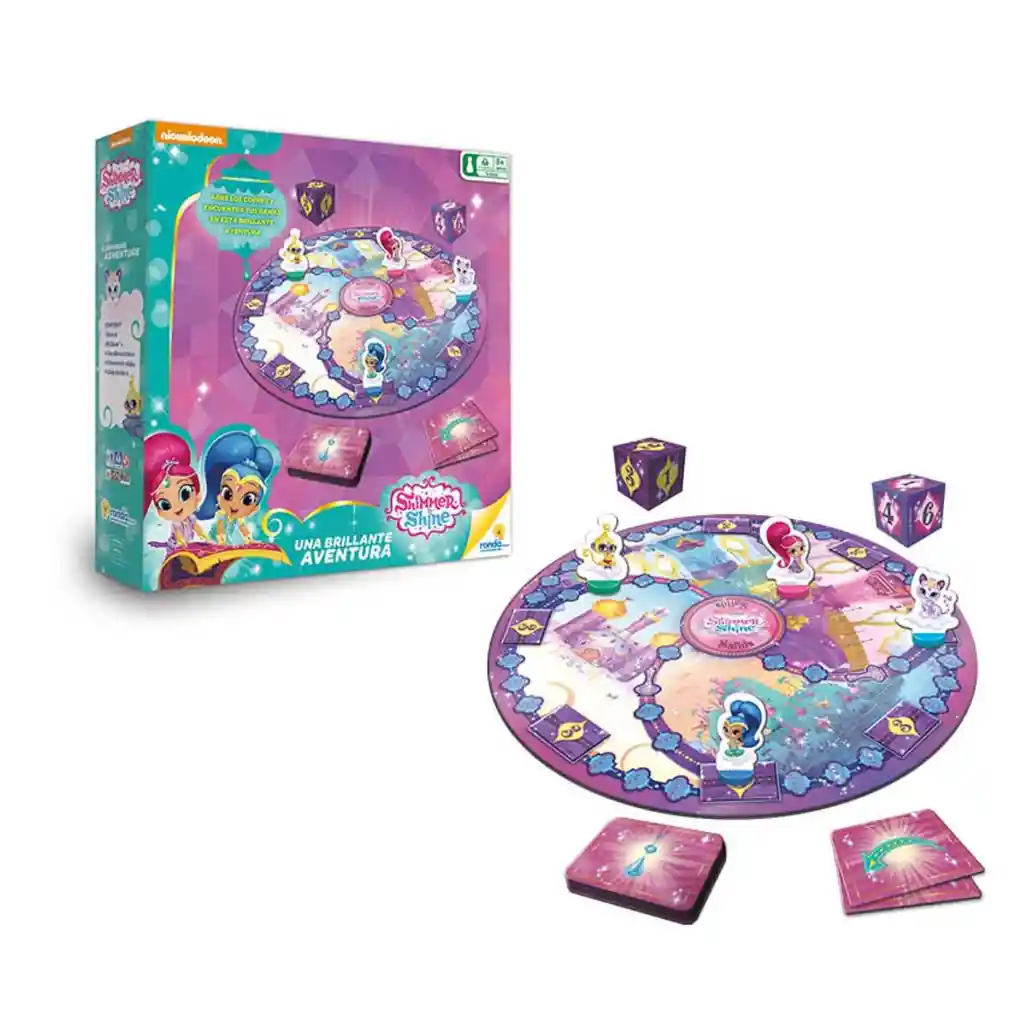 JUEGO DE MESA SHIMMER & SHINE: UNA BRILLANTE AVENTURA MARCA RONDARONDA es una marca con más de 45 años de experiencia, desarrollando nuevas líneas, creando productos diferentes e innovadores para lograr llegar día a día a mas familias. Ofreciendo productos de calidad que fortalecen la unión familiar y el desarrollo de habilidades.Shimmer & Shine están en aprietos un deseo no salió con esperaban y todas sus gemas han sido ocultas en cofres repartidos por Zahramay, ahora deberás ayudarlas, ser la primera en recolectar las gemas y volver a casa.Recomendado para niños mayores de 8 años.