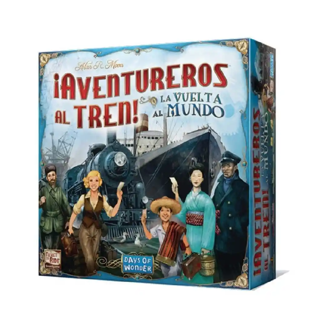 Las vías del tren unen países y continentes, y viajes que antes requerían semanas ahora pueden completarse en cuestión de días. Los mares ya no son obstáculo: enormes barcos de vapor cruzan los océanos con cientos de pasajeros. Desde Los Ángeles hasta Sídney, desde Múrmansk hasta Dar Es Salaam, ¡Aventureros al Tren! La Vuelta al Mundo te lleva de aventuras por todo el globo. Tipo de juego: competitivo Tiempo de juego: 60 min Numero de jugadores: 2 a 5 Edad: 8+