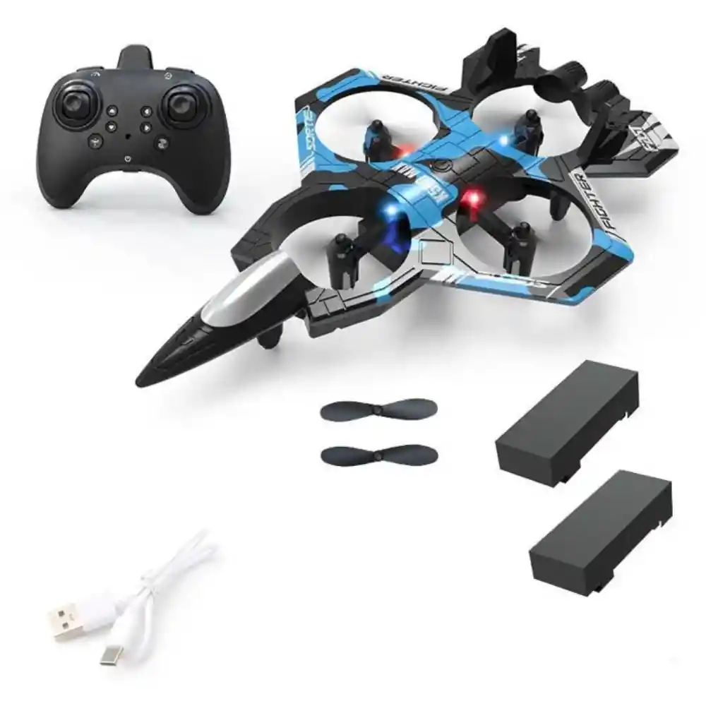 Dron Avión De Combate Dual Control Giros Acrobáticos En Espuma. CARACTERISTICAS: * Hermoso Drone tipo avión de control remoto Dual. * Hecho de material de espuma EPP, peso ligero, alta flexibilidad y no es fácil de romper. * Avión teledirigido 2.4GHz 6 CH sin interferencias. * Función: adelante, atrás, vuelo izquierda/derecha, cámara 480P. * Función de cambio de velocidad lenta, giro de acrobacias de 360°. * Distancia de vuelo: 60 metros. * Tiempo de vuelo: 6-7 minutos * Tiempo de vuelo: 6-7 minutos * Tiempo de carga: 120-150 minutos. * Manejo Con Control remoto o Pulsera . DESCRIPCION: - Dron tipo avión de combate, Ligero y estable: esté hecho de material EPP, liviano, de alta flexibilidad, no es fácil de romper. Adopta un diseño de contorno neumático de alta eficiencia, garantiza buena estabilidad, operabilidad y rendimiento de deslizamiento. - Utiliza un potente súper motor para controlar fácilmente las acrobacias, Función de cambio de velocidad lenta, giro de acrobacias de 360°. Función: Adelante, atrás, arriba, abajo, giro a la izquierda y a la derecha, vuelo lateral izquierdo y derecho, modo de cabeza, retorno con una sola tecla, vuelo estacionario, rápido. Además un control de pulsera que puede ser manejado con el dedo ESPECIFICACIONES: * Distancia de vuelo: 60 metros. * Tiempo de vuelo: 6-7 minutos * Tiempo de vuelo: 6-7 minutos * Tiempo de carga: 120-150 minutos. *CONTIENE: 1* Avión RC 1* Control remoto 1* Control Pulsera de dedo 1* Batería 4* Hélice de repuesto 1* Destornillador 1* Cable de carga USB 1* Manual del usuario.