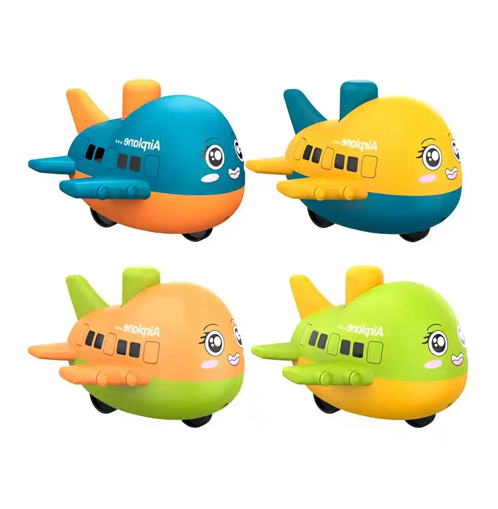 Divertido set de 4 aviones de cuerda ideales para niños a partir de 3 años, diseñados para ofrecer horas de entretenimiento; cada avión se activa al presionar su parte superior, lo que les da cuerda y los impulsa rápidamente hacia adelante, estimulando el juego activo, la coordinación y la imaginación de los pequeños. /// El precio corresponde a 4 aviones /// Ficha Técnica: Materiales : Plástico ABS Libre de BPA Dimensiones: 9.5 cm x 8.5 cm x 7 cm Edad recomendada : + 3 meses en adelante Material suave, cómodo, seguro, no tóxico Referencia: JB1437 Certificado de conformidad: SL-CS-210044 ** _Para defectos de fábrica o retractos: \_Por favor revise el producto apenas lo reciba y antes de usarlo. No aplican ley de retracto o defectos de fábrica luego de usar el producto. Se manejan máximo 5 días para reportar defectos de fábrica (por ejemplo, producto funciona mal, piezas faltantes, rotas, etc). Para hacer efectiva la devolución el producto debe devolverse con el empaque original, el cual debe estar en buen estado, incluir todos los documentos y las partes completas y sin daños.