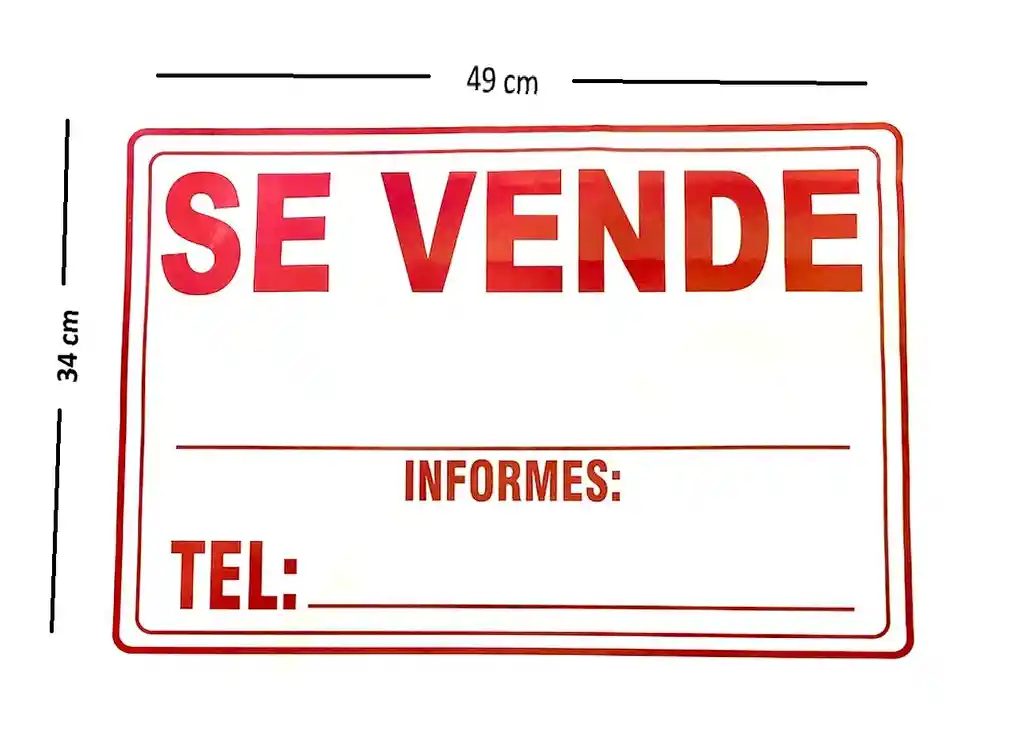 Aviso - Letrero de en 1/4 X 2 Und Se Vende Texto del letrero: Se Vende Tamaño: 1/4 - Medidas 49 X 34 Cm Cantidad: 2 Unidades Material: Bond Color: Letras en Rojo