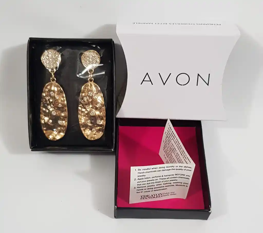 Marca: avon Aretes dorados, oro laminado, con piedras en murano, muy sutiles y elegantes para toda ocasion.