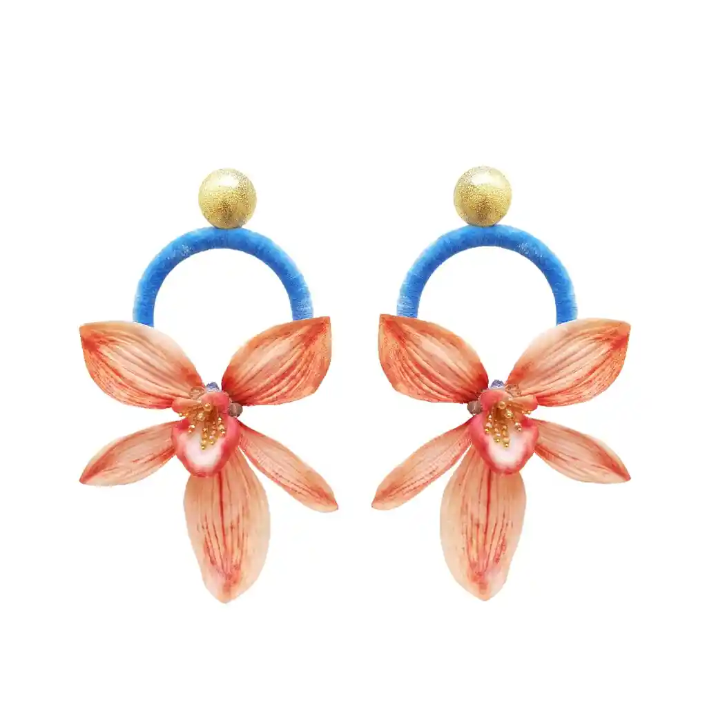 "Atalí Jewelry, marca de Diseño de Colombia inspirada en la belleza de la naturaleza y en el encanto de sus flores. Piezas elaboradas bajo un proceso artesanal por manos delicadas de mujeres del Atlántico Colombiano. Cada una de ellas afirma su originalidad y busca cautivar miradas con su espíritu exuberante. Diseñadas para una mujer vanguardista que busca equilibrar el encanto moderno con la esencia del arte. Para la elaboración de las piezas se utilizan estos Materiales: Aretes volare : Flor en latex con detalles en cristales de murano, plumas sinteticas y terminaciones en alambre con baño de oro. Dimensiones: 12 cm de largo x 9 de ancho. Peso 20g."