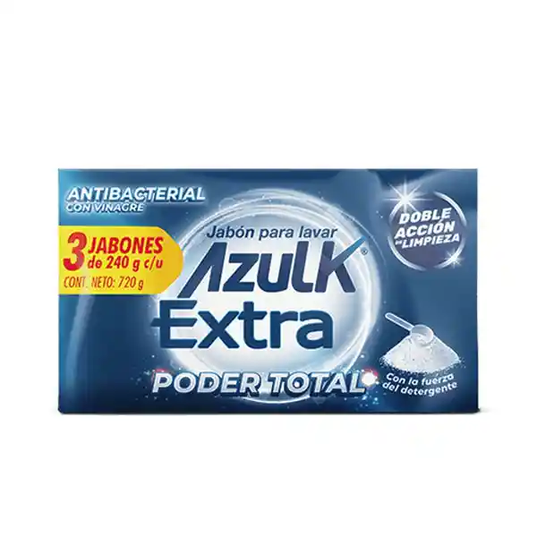 Jabón en barra que une la fuerza del detergente con la acción del vinagre, el cual intensifica los blancos, ayuda a eliminar las manchas de sudor, los olores, neutraliza bacterias y elimina la suciedad. Es Antibacterial limpia, desinfecta, brinda seguridad y bienestar. Contiene 3 Unidades de 240 g c/u.