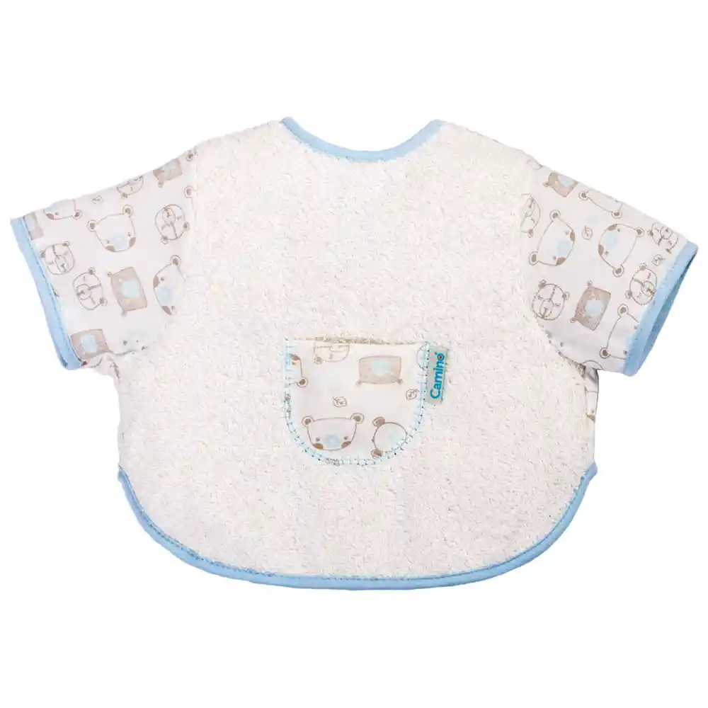 Medidas: 29 cm x 28 cm Composición: Cuerpo: 100 % algodón – Mangas y espalda: 65 % poliéster – 35 % algodón Color: Beige / Azul claro Para bebés de 0 a 24 meses