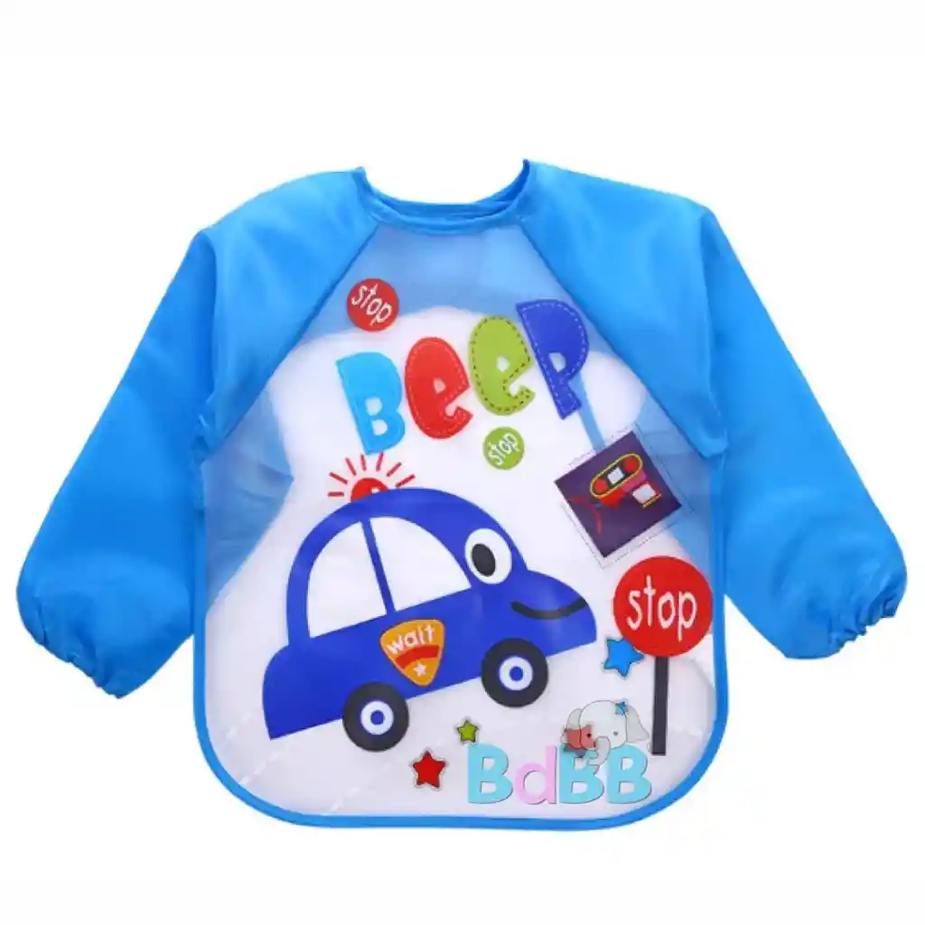 ¡Útil babero con mangas! Tiene el frente impermeable para evitar que se humedezca su ropita al comer, mangas con caucho para mayor ajuste y ajuste átras para mayor seguridad. Úsalo desde los 10 meses en adelante, es talla única. ¡Anímate a comprar o regalar! ESCOGE TU FAVORITO EN LAS OPCIONES
