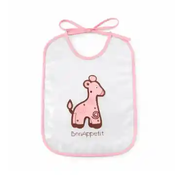 Práctico y adorable babero para bebé con diseño de jirafa y la frase “Bon Appetit”. Ideal para mantener la ropa limpia durante las comidas, gracias a su material impermeable y fácil de limpiar. Su ajuste con tiras permite colocarlo de forma cómoda y segura. Material impermeable y ligero Fácil de limpiar (solo pasar un paño) Diseño tierno y color rosa atractivo Ajuste con cintas para mayor comodidad Perfecto para bebés en etapa de alimentación ¡Un básico indispensable para la hora de comer! 🍼